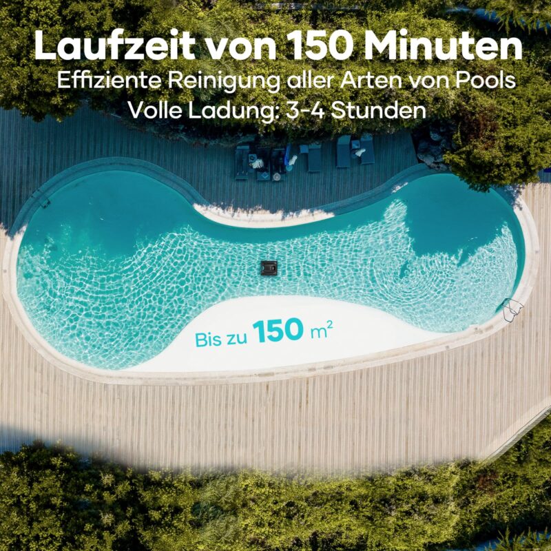 AIPER Kabelloser Poolroboter – Wand & Wasserlinie, Navigation 2.0, 150 Min. Laufzeit, 3,5L Filterkorb für Pools bis 150m² (4 Modi)