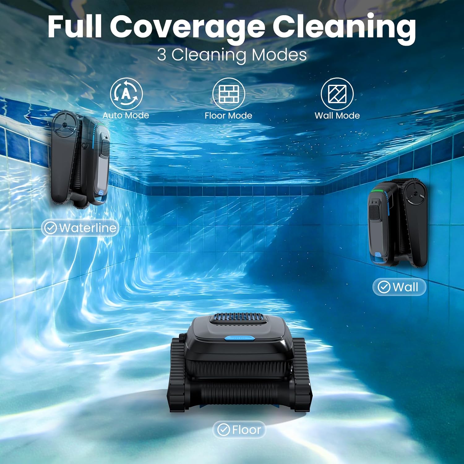 AIPER Kabelloser Poolroboter – Wand & Wasserlinie, Navigation 2.0, 150 Min. Laufzeit, 3,5L Filterkorb für Pools bis 150m² (4 Modi)