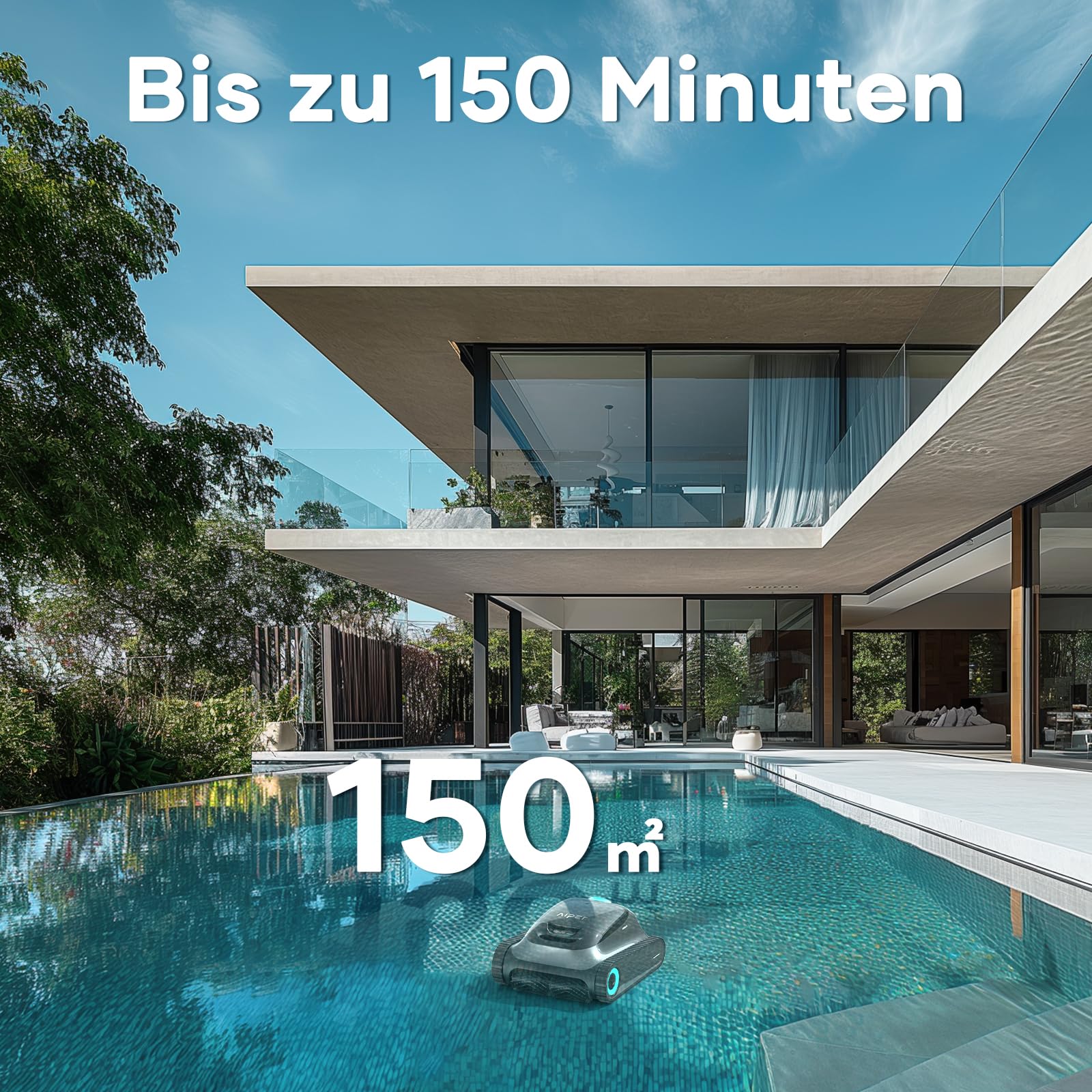AIPER Kabelloser Poolroboter – Wand & Wasserlinie, Navigation 2.0, 150 Min. Laufzeit, 3,5L Filterkorb für Pools bis 150m² (4 Modi)