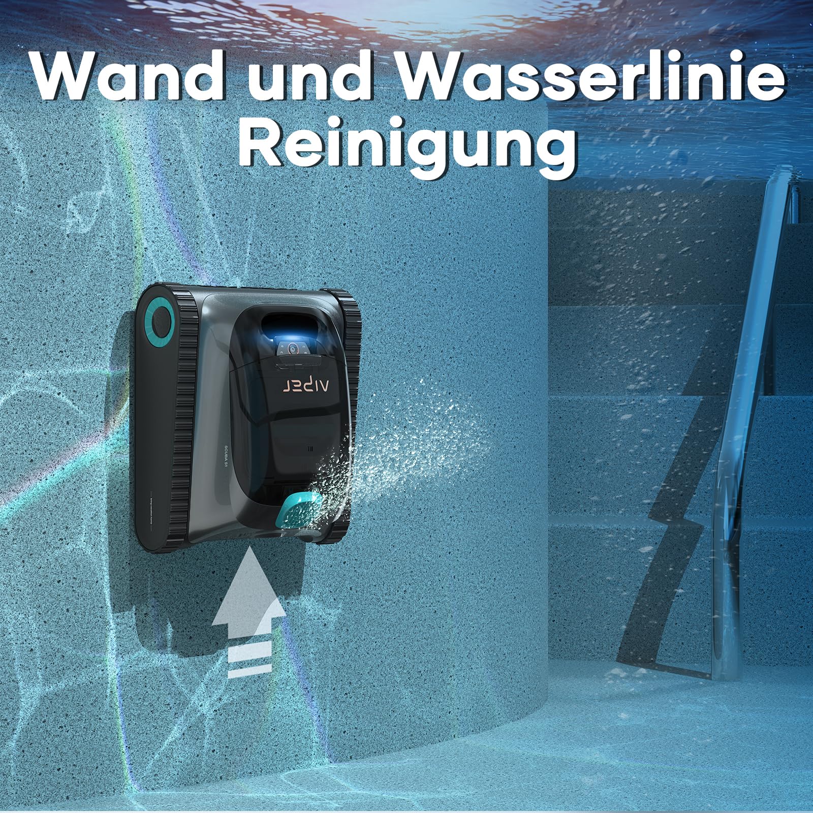 • Überragende Mobilität: Das einzigartige Raupenband-Design ermöglicht eine stabile Fortbewegung auf allen Oberflächen und ein müheloses Erklimmen der Poolwände.