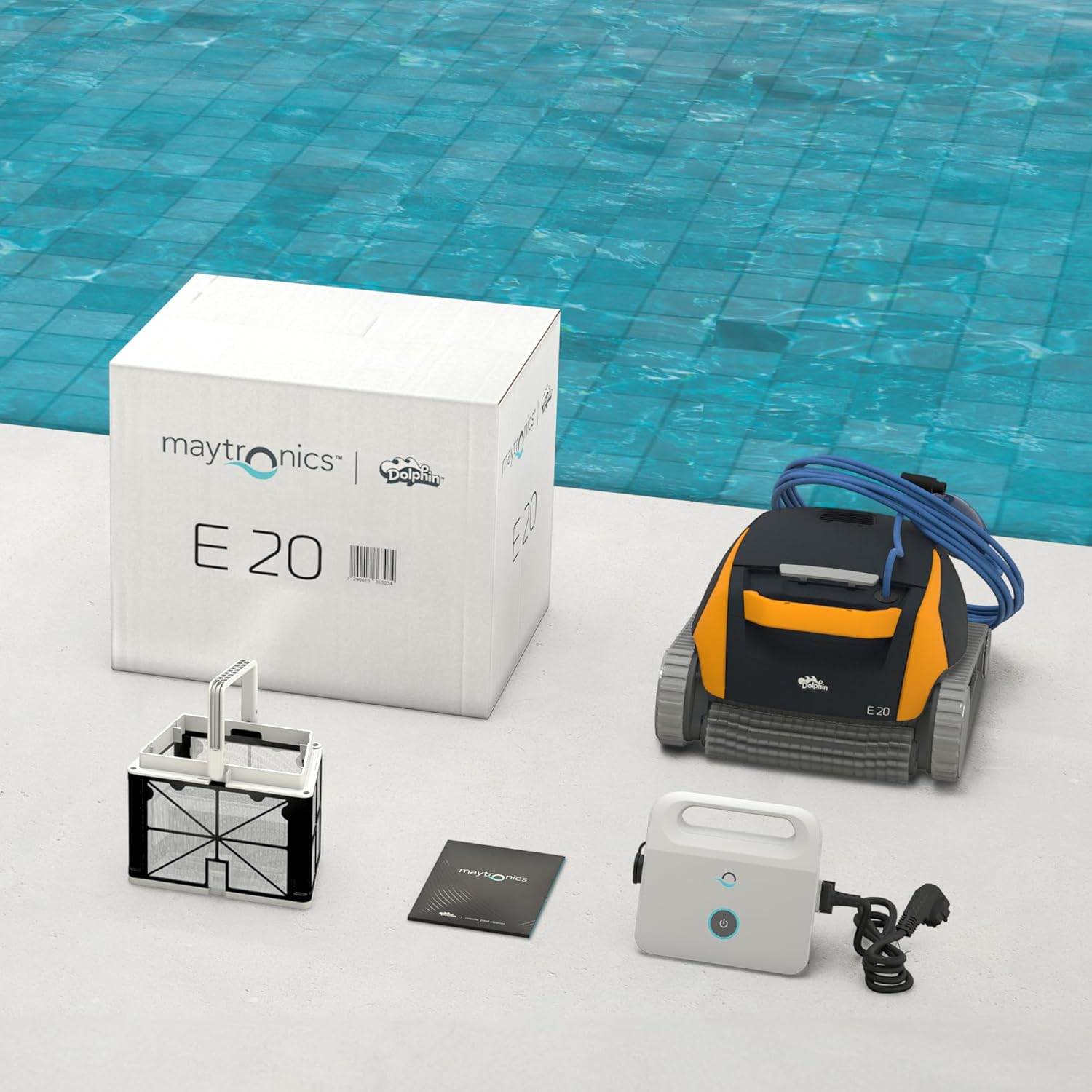 Der Dolphin E20 ist der ideale Einsteiger-Poolroboter für alle, die eine zuverlässige und vollautomatische Lösung zur Reinigung von Boden und Wänden suchen. Entwickelt von Maytronics, kombiniert dieser kompakte Poolreiniger bewährte Qualität mit intuitiver Handhabung, um Pools mit einer Länge von bis zu 10 Metern in nur zwei Stunden strahlend sauber zu halten.
